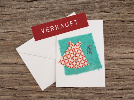 Papier: Sommerkleid aus japanischem Buntpapier, Quadrat aus Japanpapier (Mino-Washi aus der Präfektur Gifu), Kuvert und Karte aus FSC-Papier, hergestellt in der Schweiz