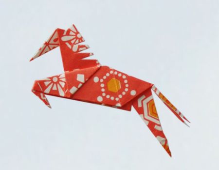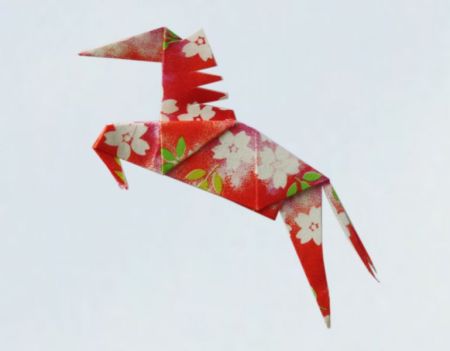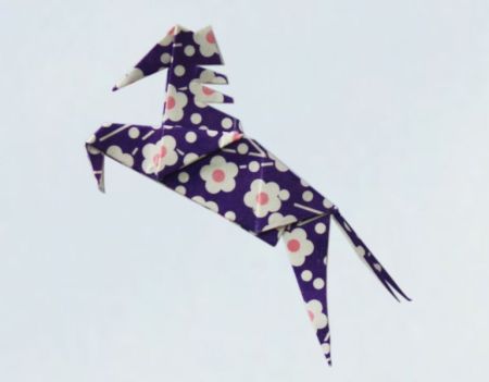 - Kirikomi Origami-Mobile «Pferderennen» von Hand gefertigt in der Schweiz bei OrigamiART